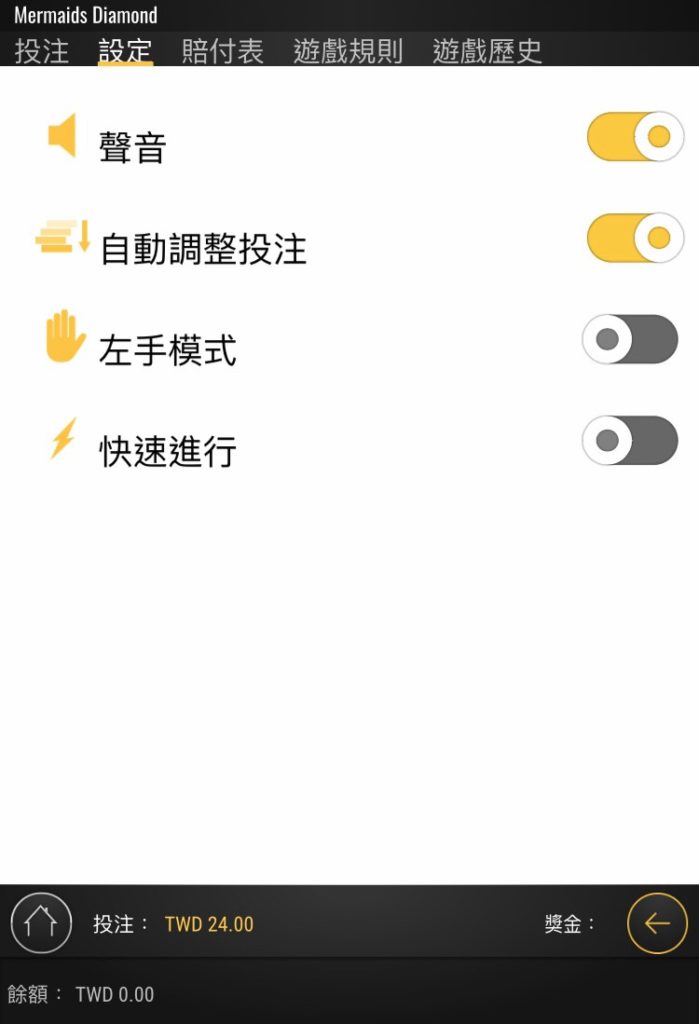 設定-可以切換靜音、左手模式跟加快轉輪速度