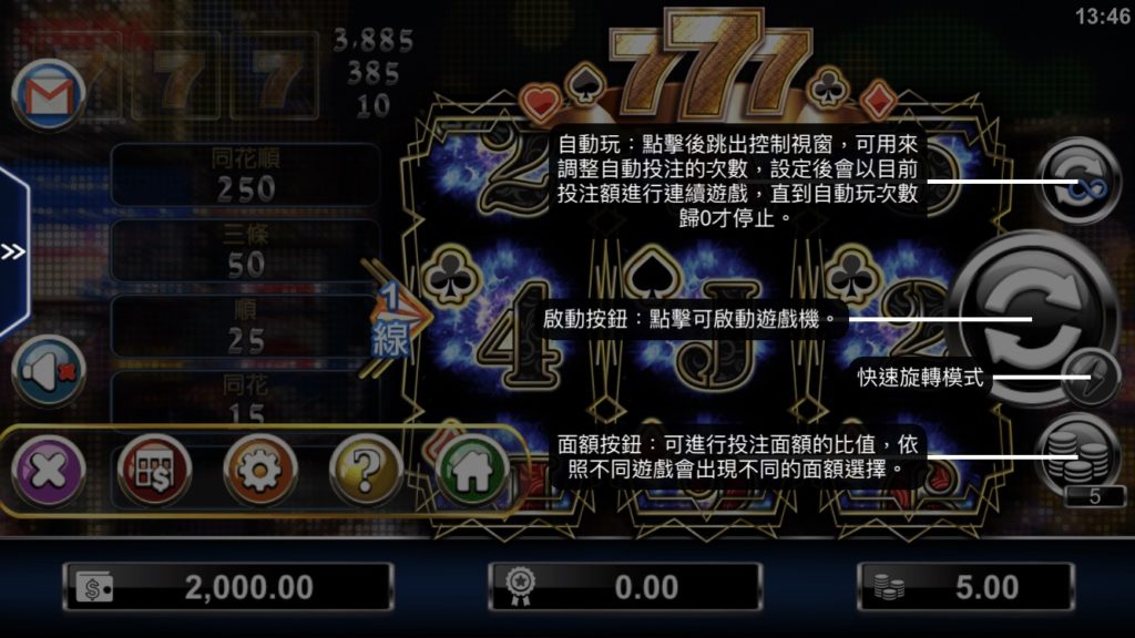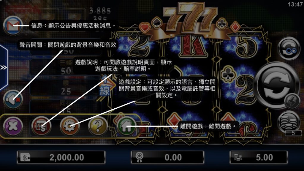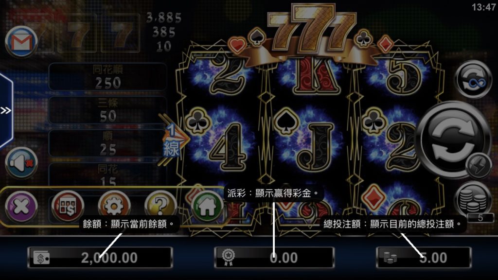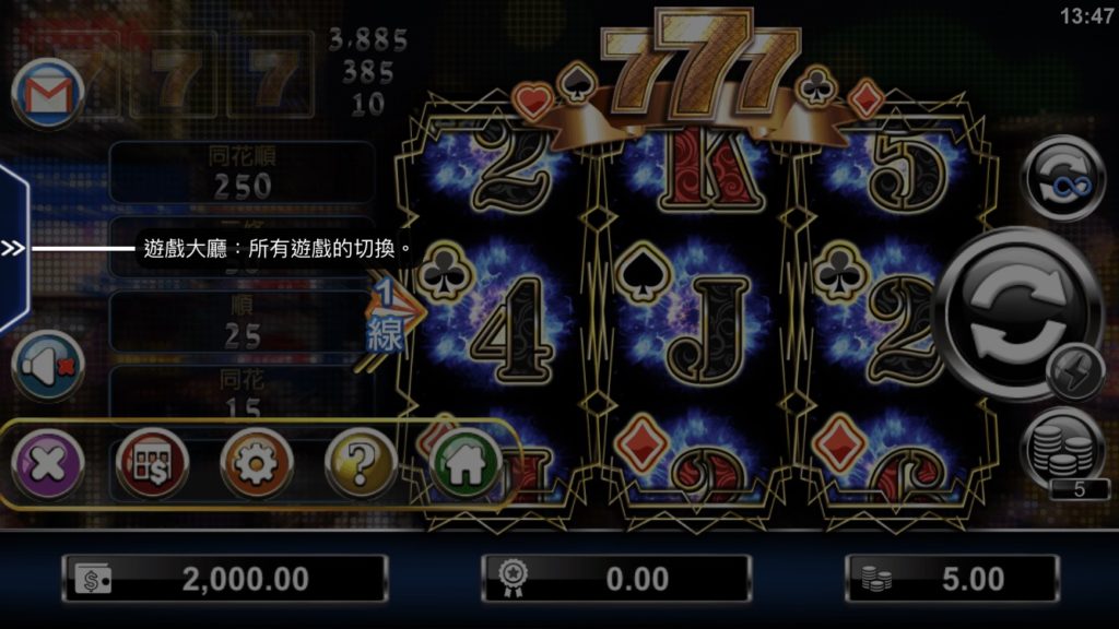 777這個遊戲很簡單~就是最傳統的拉霸機那樣~只是它用的是撲克的元素下去做!!