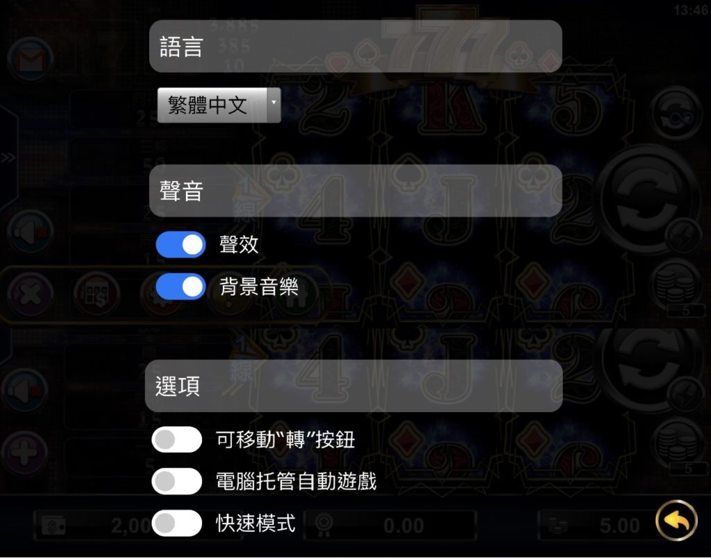 2.設定 可以設定語言、聲音跟遊戲託管設定