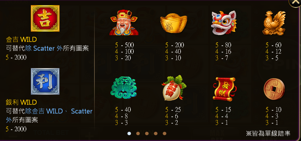 通常如果出現大吉大利的畫面~~就代表會有高機率出現全盤,通常看到這個就會很緊張,也許下一秒就會看到全吉盤呢!那可是2000倍的賠率呀!