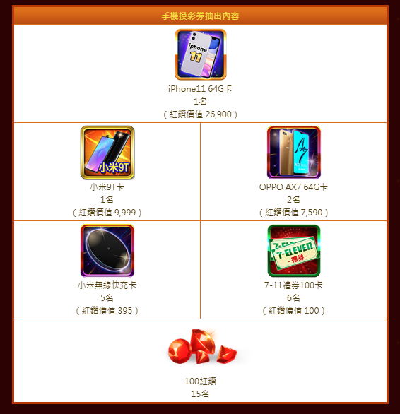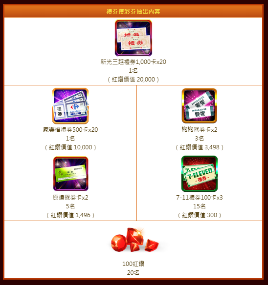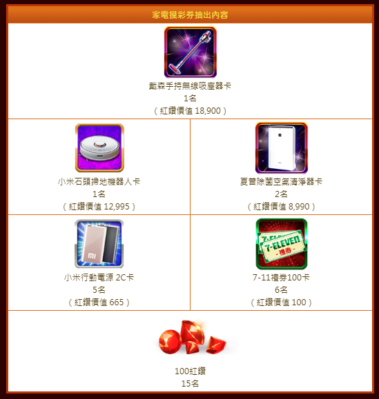 ※身上持有獲選獎品抽獎券的玩家,才有資格參加當次摸彩。