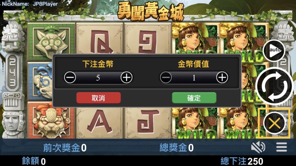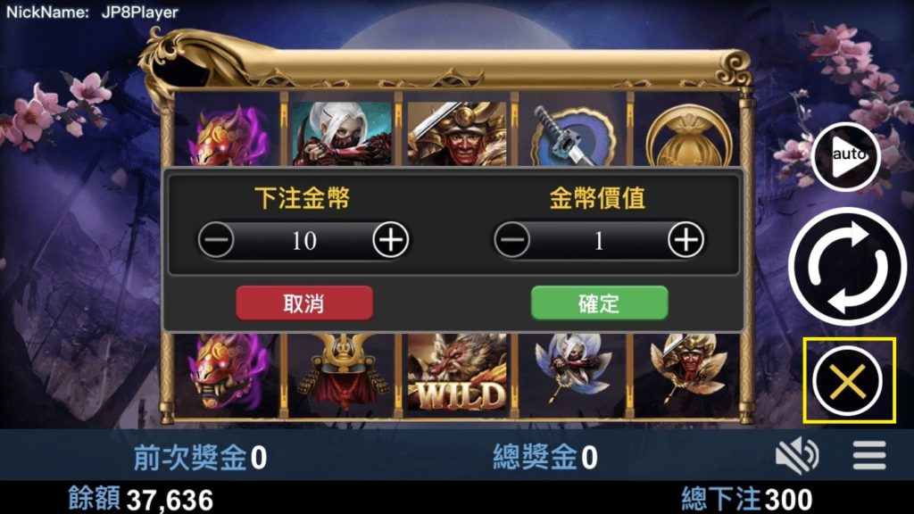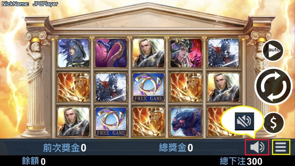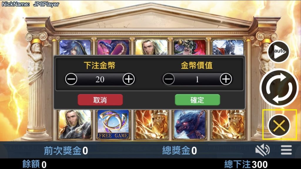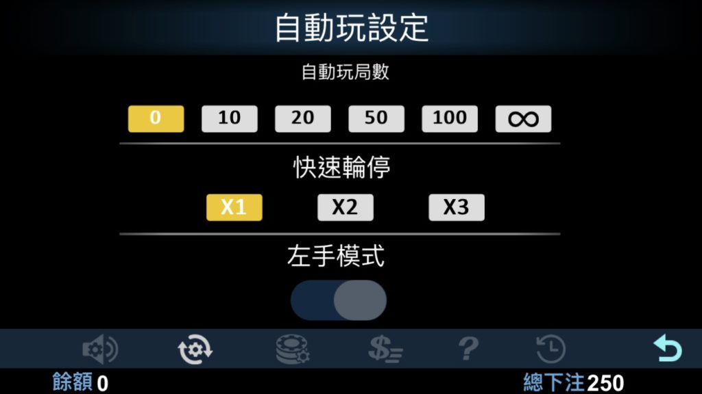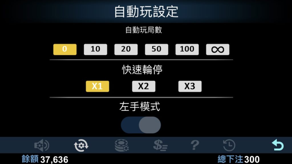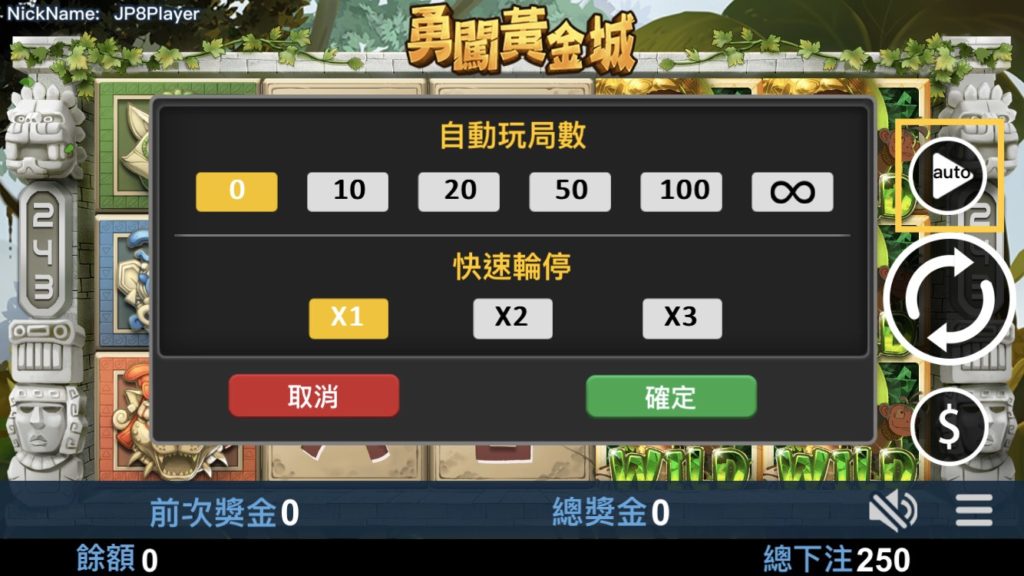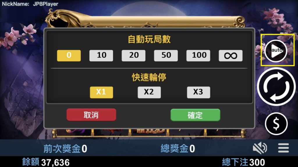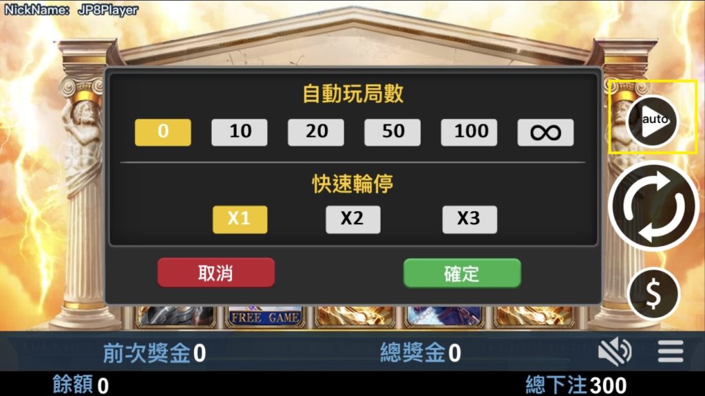 遊戲主頁面,點擊 ▶ 圖示可以直接設定自動玩局數跟轉速
